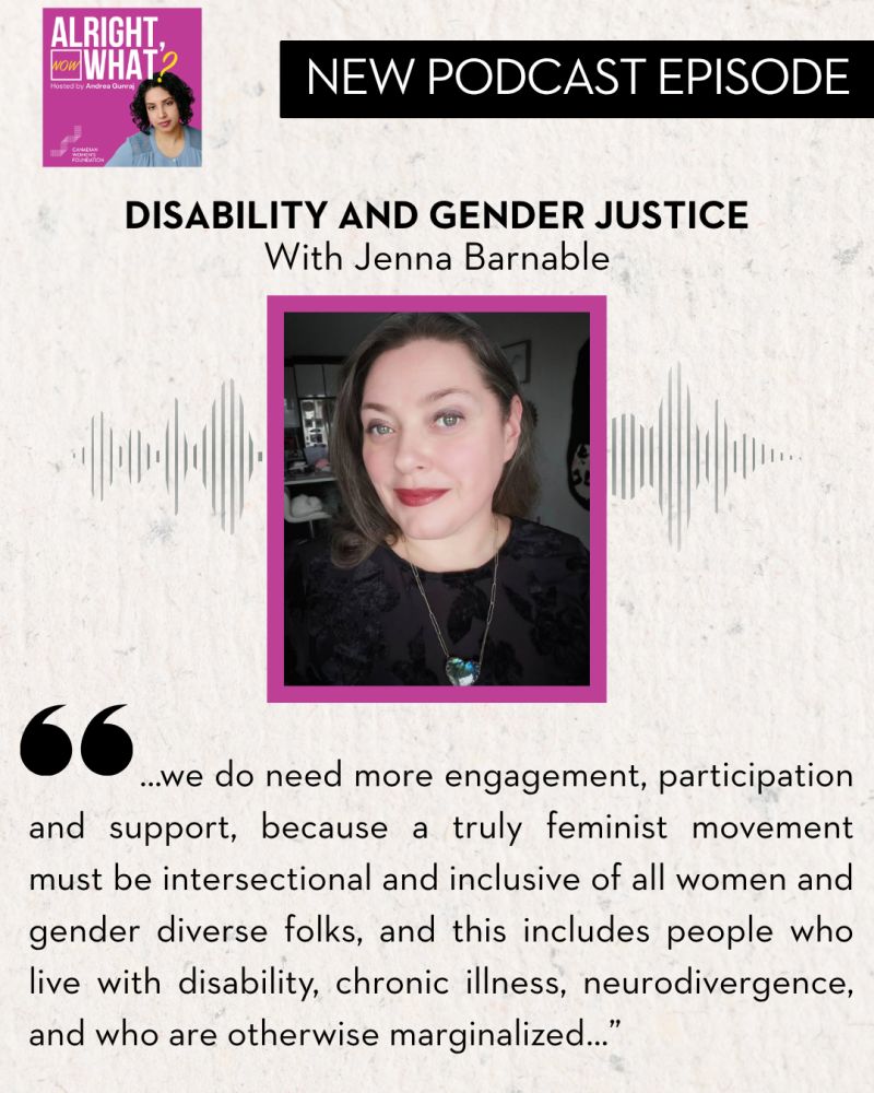 “On this episode, host Andrea Gunraj speaks with disability rights advocate Jennifer Barnable on how ableism and gender discrimination create barriers for women and gender-diverse people with disabilities. Jenna shares her lived experience and advocacy for anti-ableist feminism, shedding light on staggering rates of violence, poor health outcomes, and systemic neglect.”